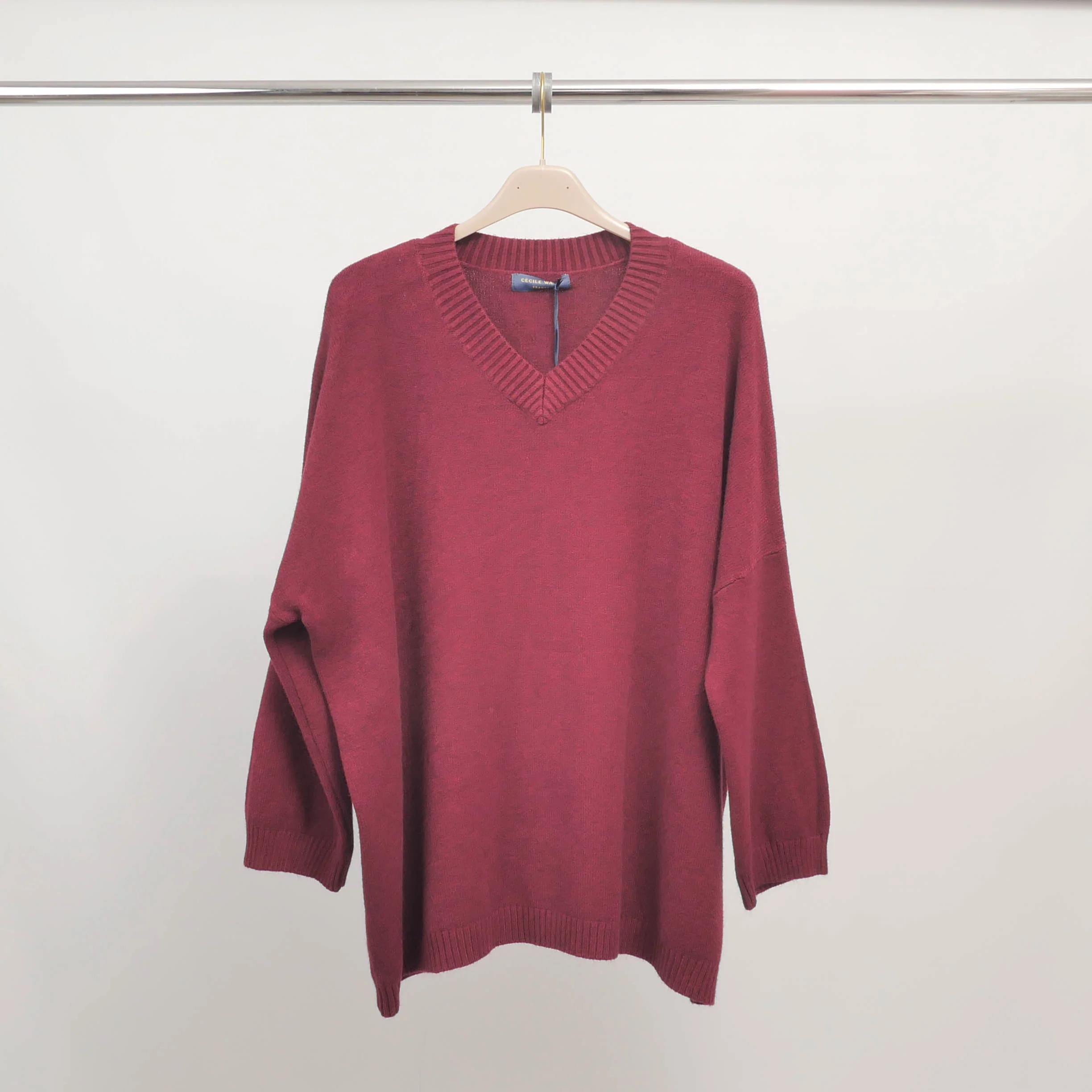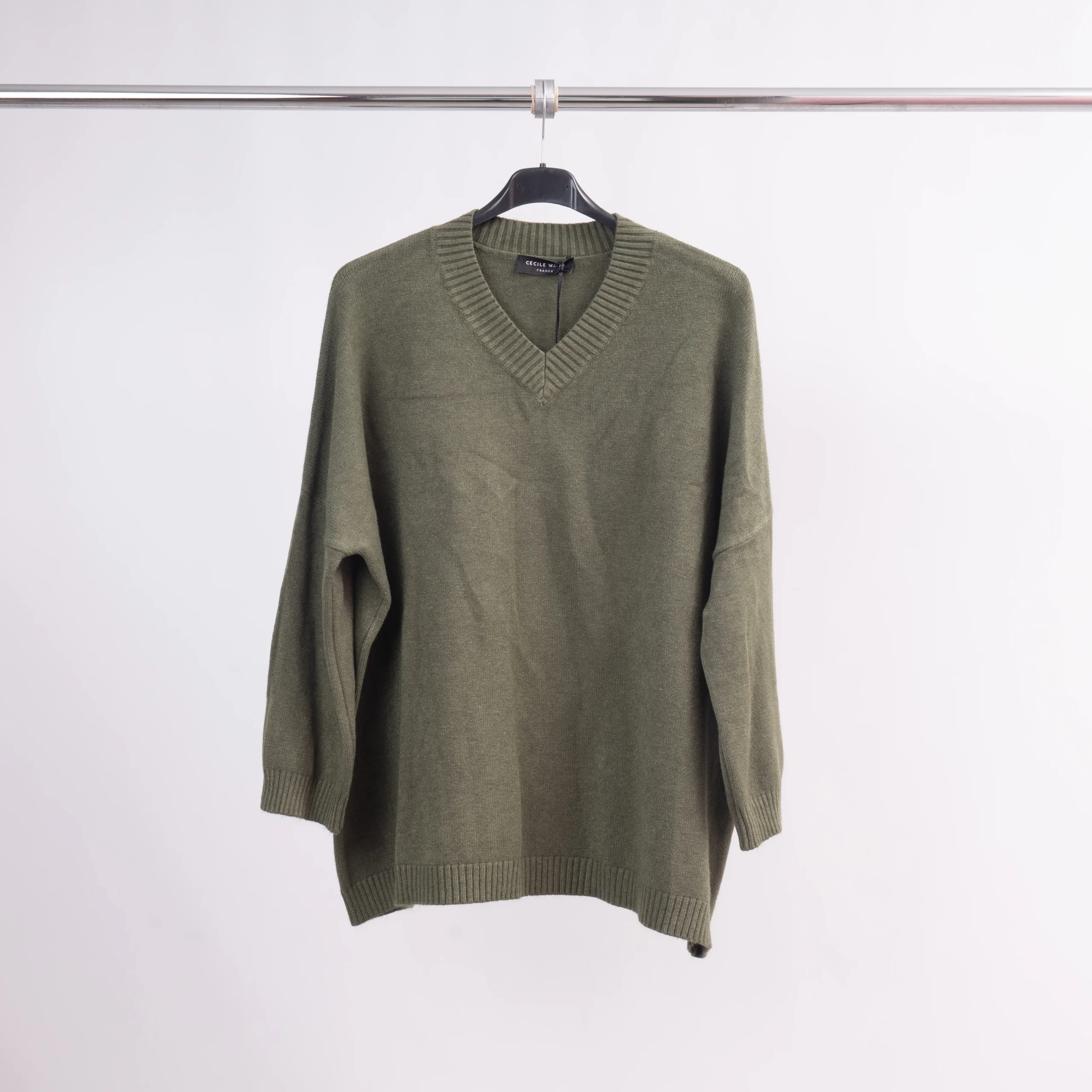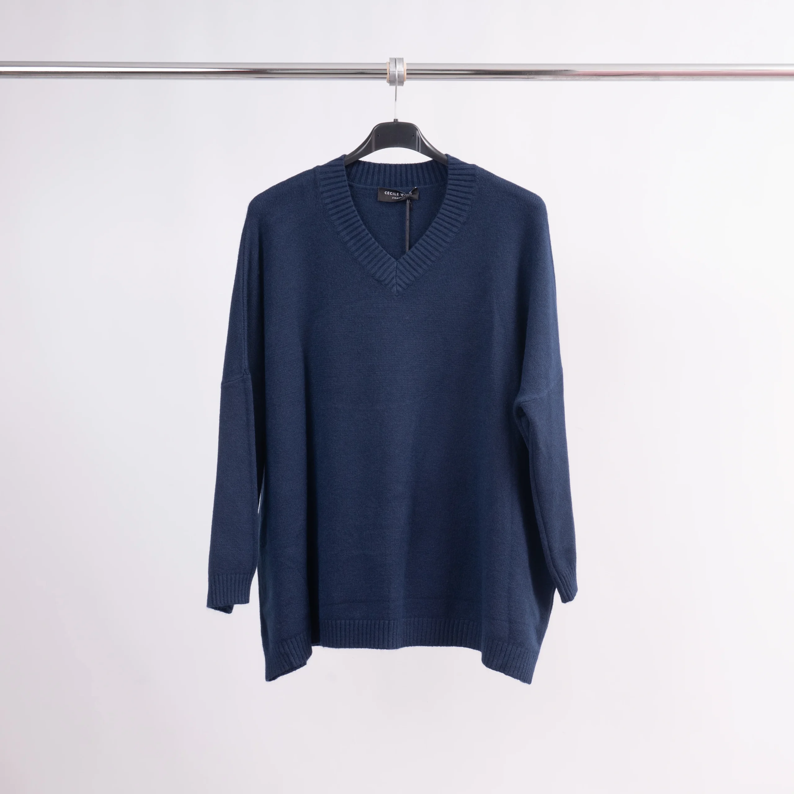 Le confort rencontre l’élégance dans ce pull col V à la coupe décontractée et fluide.