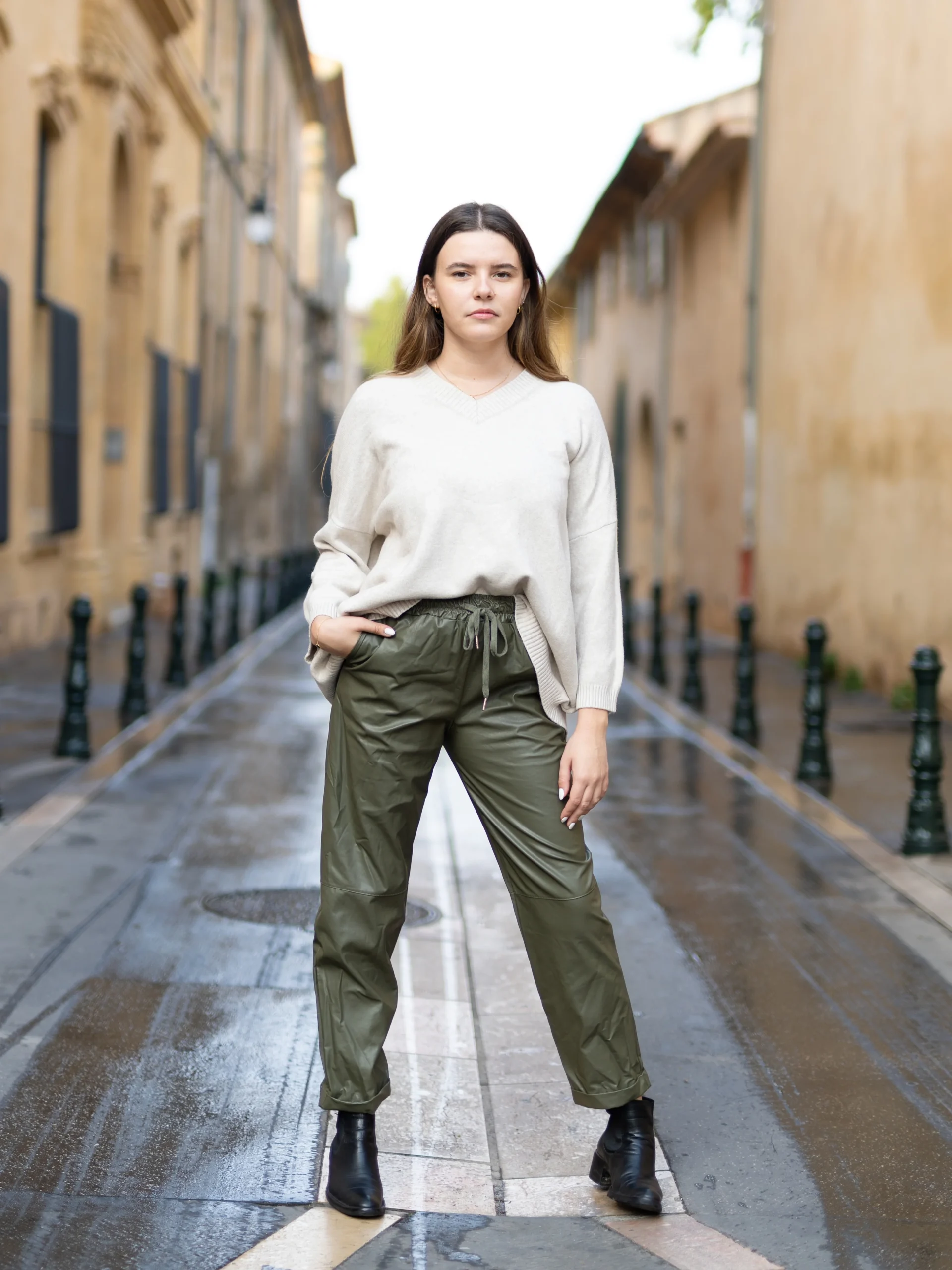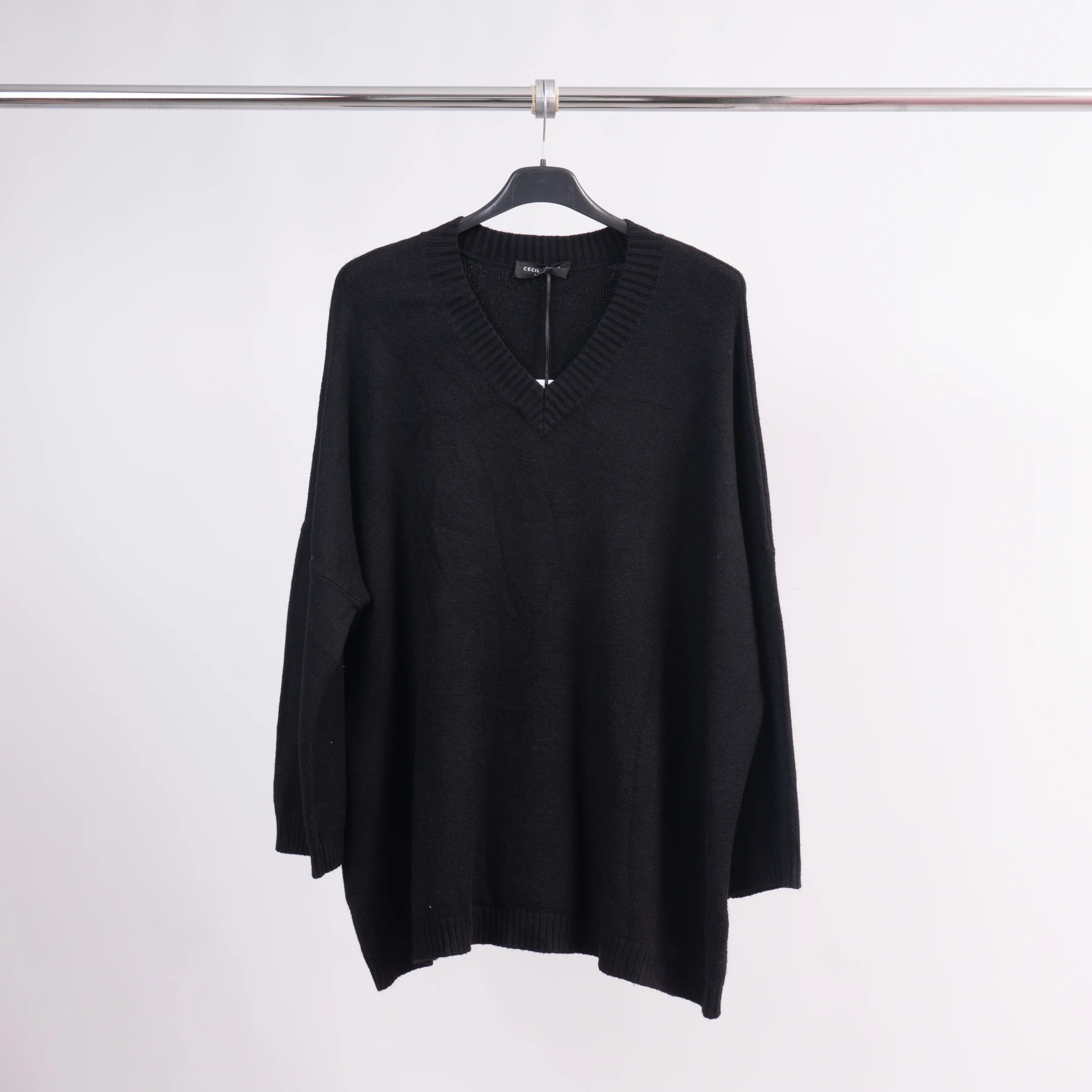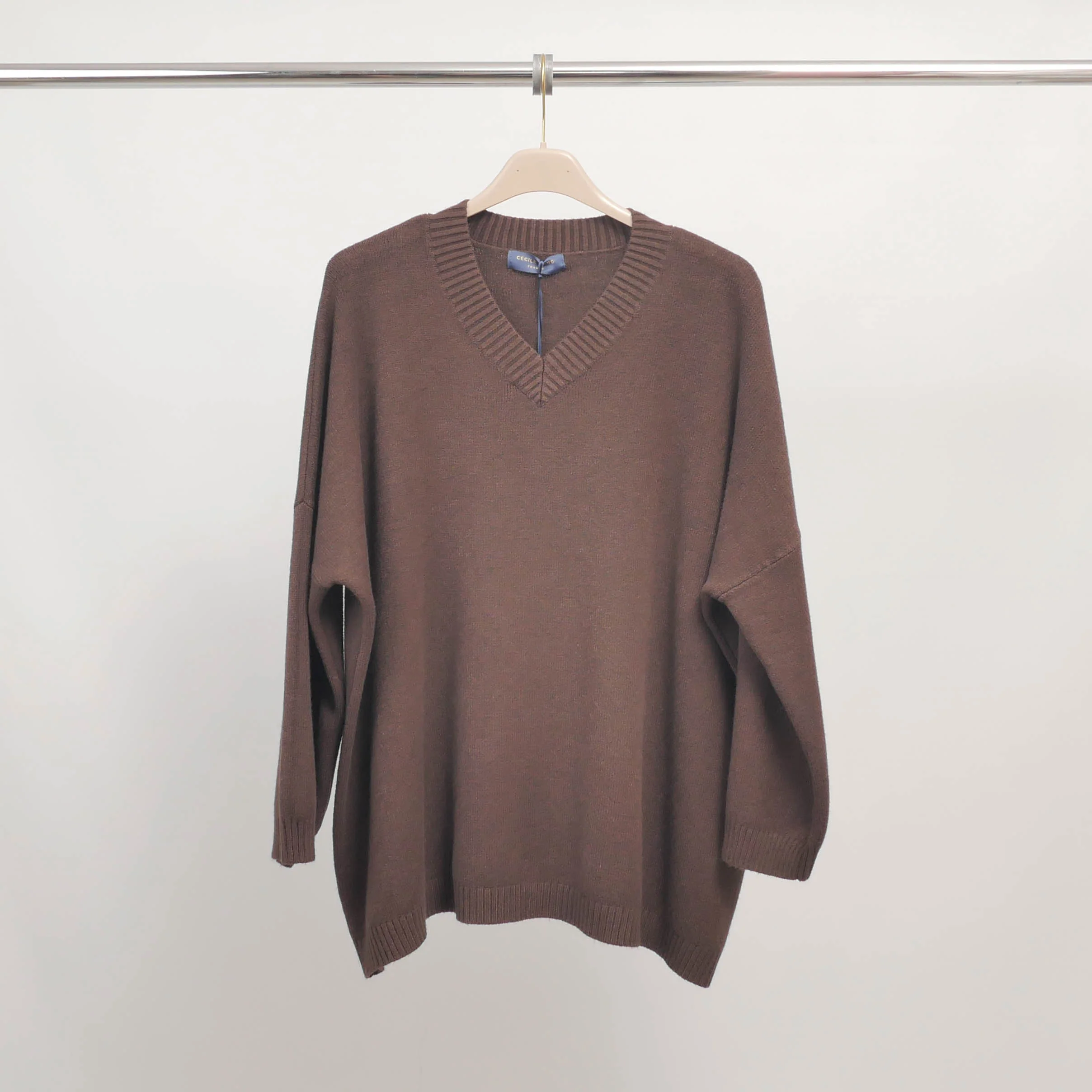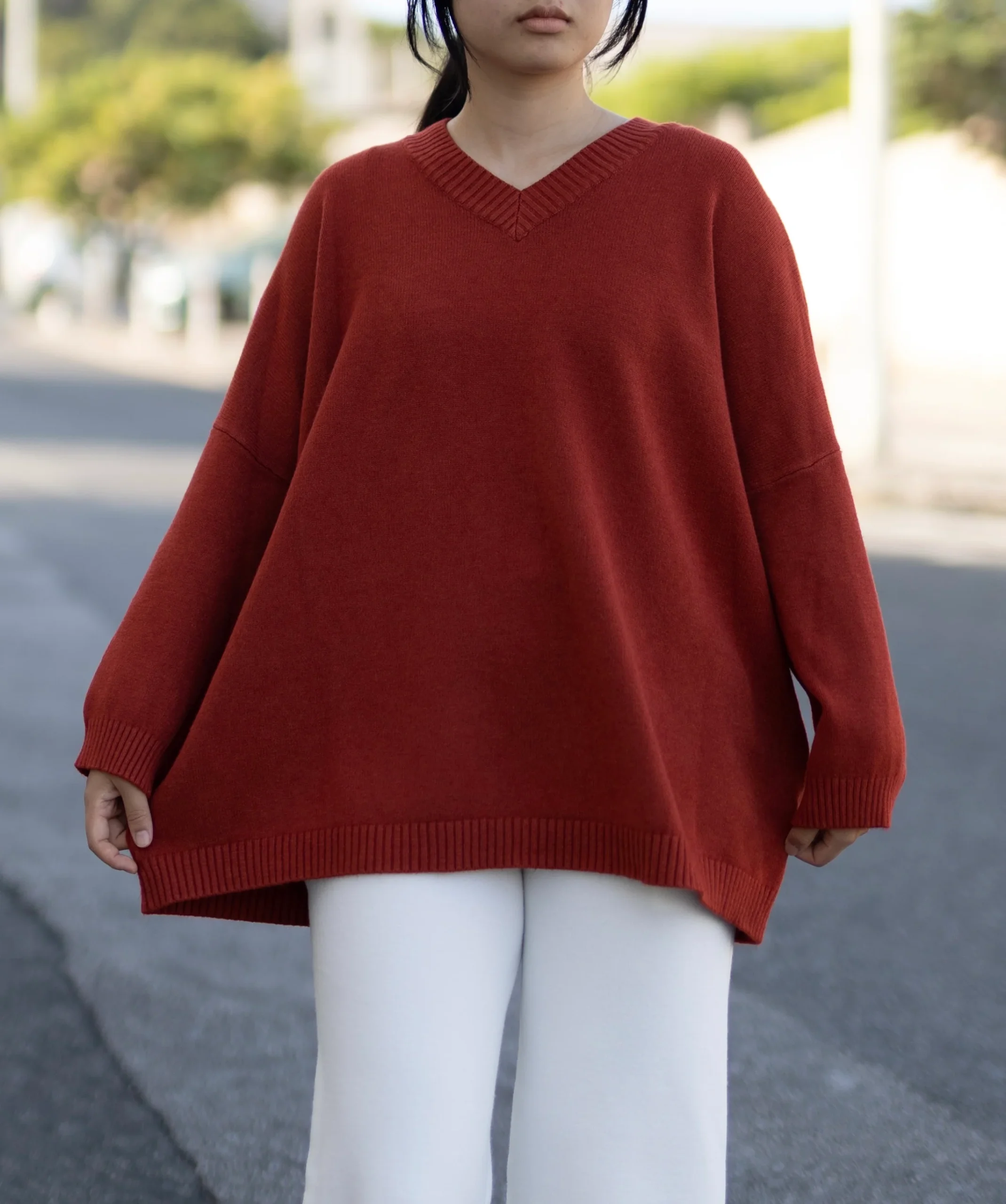 Le confort rencontre l’élégance dans ce pull col V à la coupe décontractée et fluide.