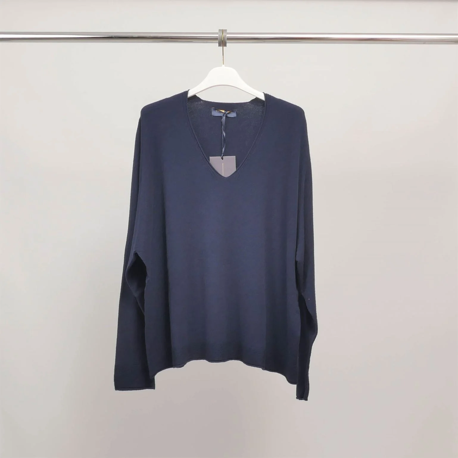 Ce pull en maille fine se distingue par sa coupe fluide et légèrement ample, idéale pour un style à la fois confortable et élégant.