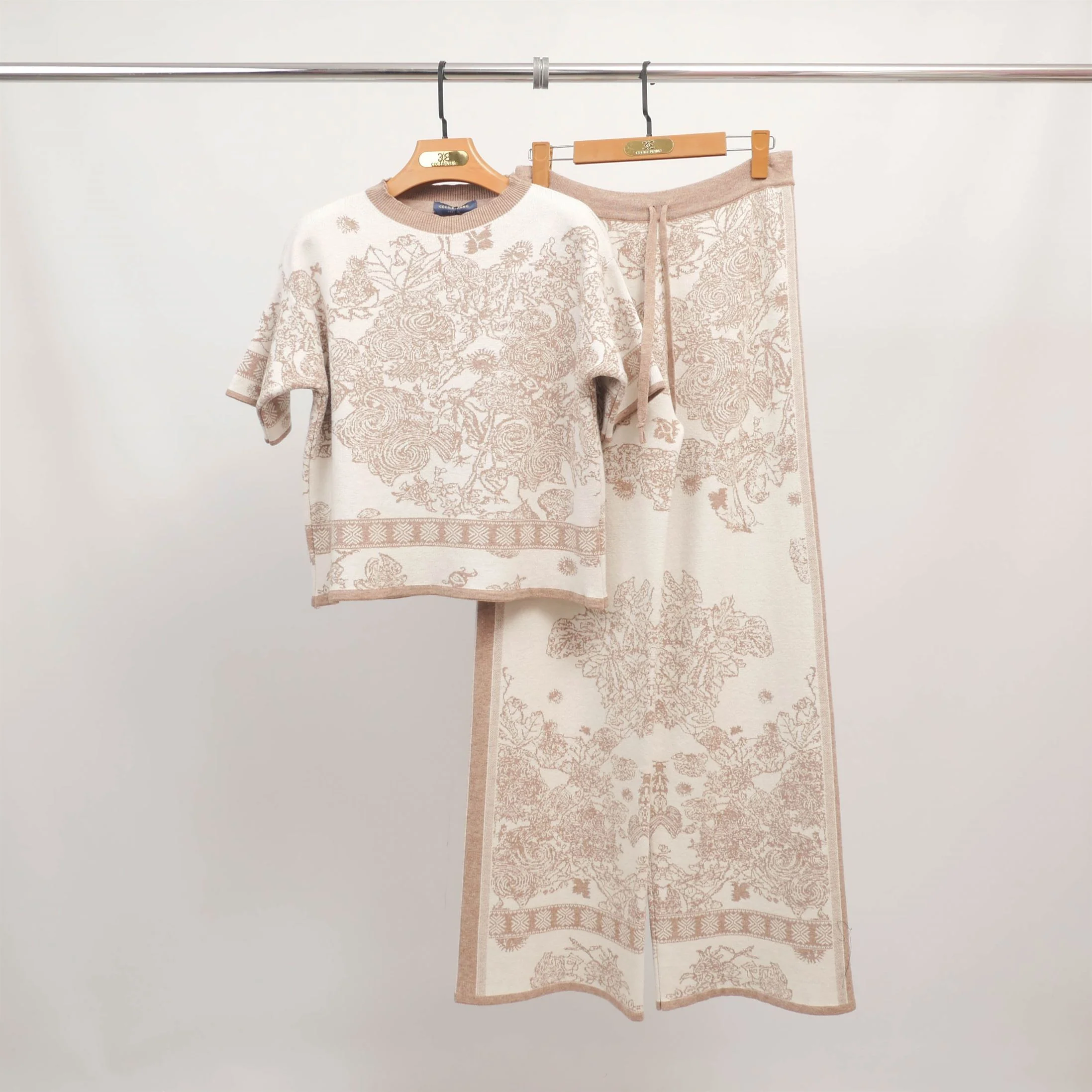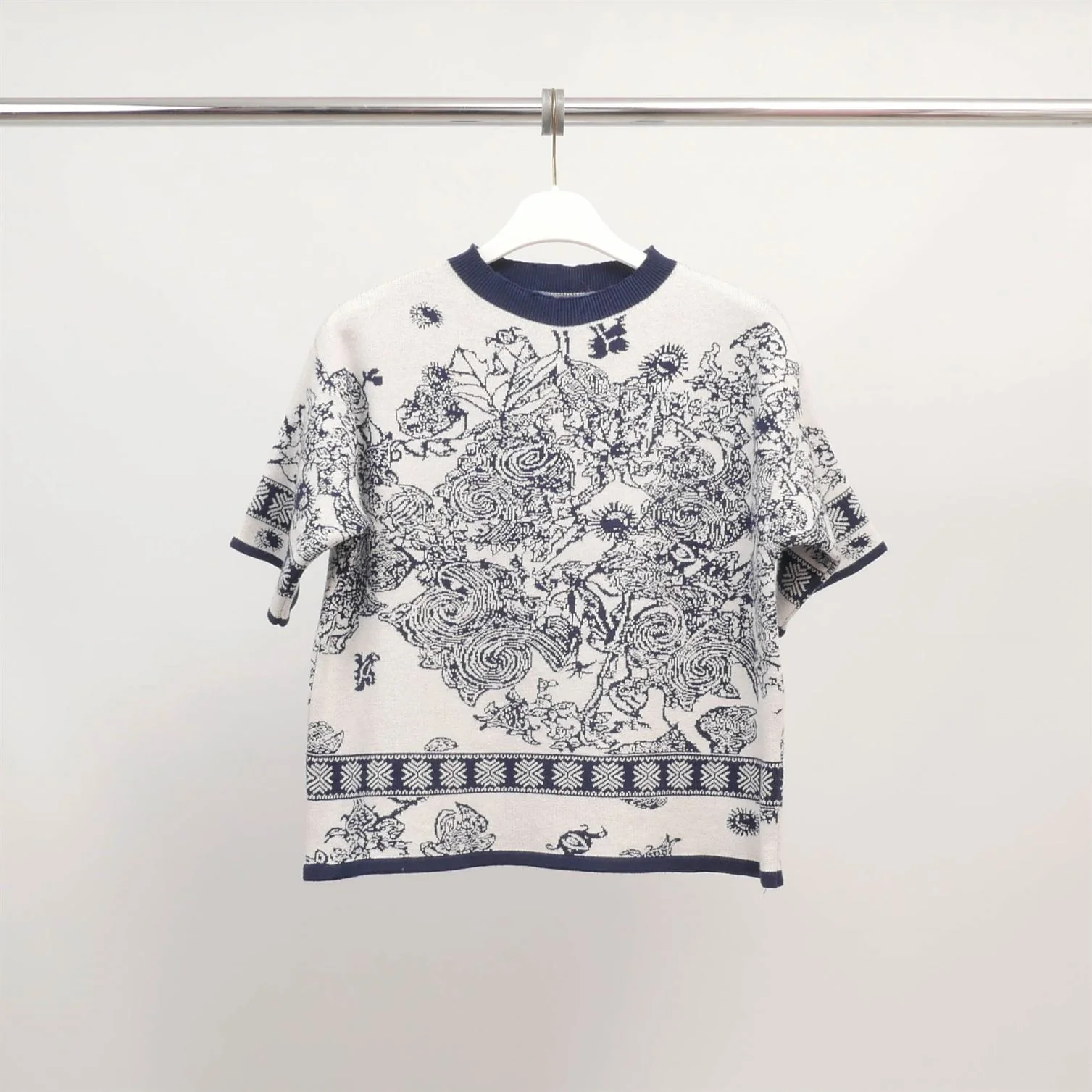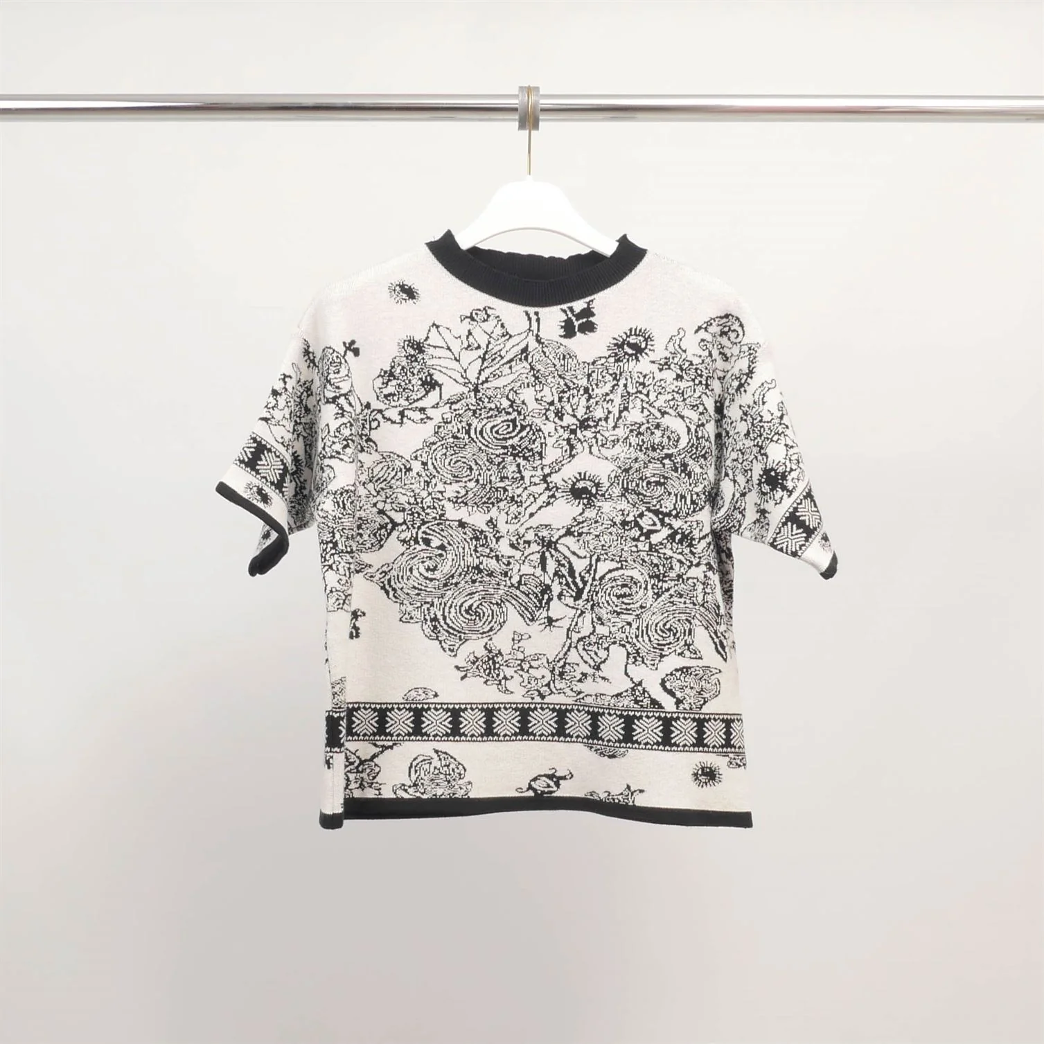 Entre esprit bohème et élégance contemporaine, ce pull à manches courtes séduit par son motif floral richement travaillé en jacquard. Sa coupe droite et son col rond côtelé offrent un tombé structuré tout en légèreté, idéal pour la mi-saison. Les bords contrastés soulignent délicatement les finitions, apportant une touche graphique à l’ensemble. À porter seul avec un jean taille haute ou assorti au pantalon coordonné pour un look résolument sophistiqué.