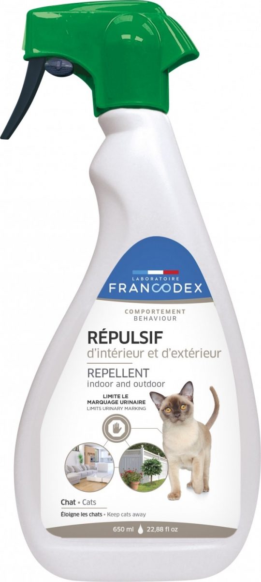 Protégez votre maison des dégradations et des marquages urinaires avec le répulsif intérieur et extérieur pour chat de la marque Francodex. Ce produit permet d’éloigner efficacement votre compagnon félin des zones que vous souhaitez protéger mais également les zones extérieures de la maison.
