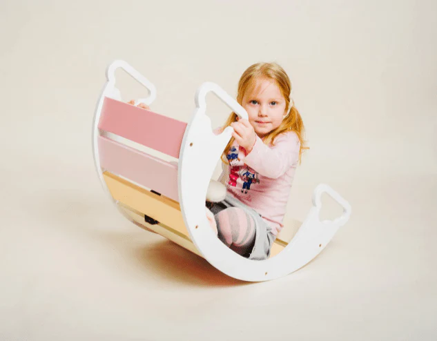 Le rocker est également pensé pour être sûr. Ses lattes offrent une surface solide, où les enfants peuvent prendre appui sans risque de se coincer les pieds. Ses poignées latérales intégrées sont conçues pour protéger leurs doigts.