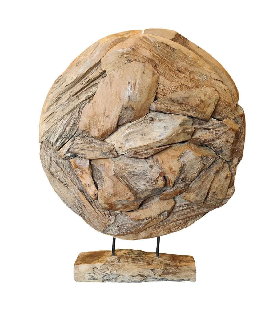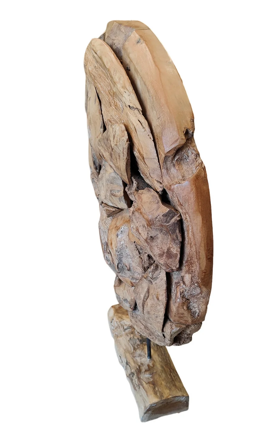 Belle sculpture ronde en teck massif brut posée sur un socle en bois. Vous cherchez une pièce unique par ses dimensions et originale à apporter à votre salon. Cette pièce est faites pour vous. Elle est apaisante et décorative à la fois. Un petit peu de nature dans votre intérieur grâce à cette sculpture en teck qui peut se mettre dans un salon ou une entrée. Vous pouvez l’associer avec les miroirs ronds en teck massif que nous vendons également sur notre site.