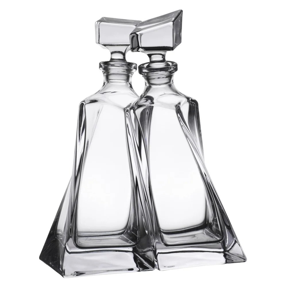 LOVERS est un set de deux carafes en cristal, aux formes masculines et atypiques. Ses 4 faces lisses se terminent par un effet de vrilles et les deux carafes donnent l’effet de se joindre. Des carafes très originale pour les amateurs. A associer au gobelet en cristal quadro.