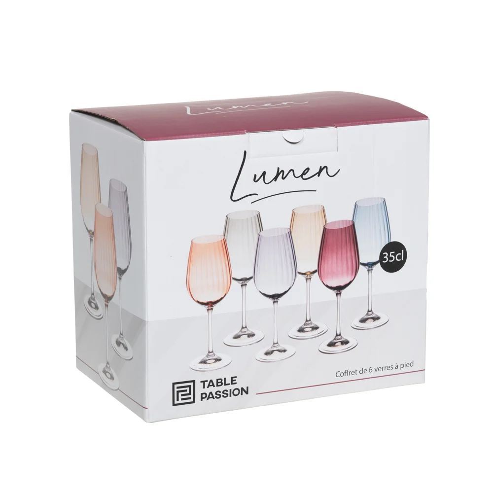 Apportez une touche de couleur et d’élégance à votre table avec ce coffret de 6 verres à pied Lumen 35 cl de Table Passion.