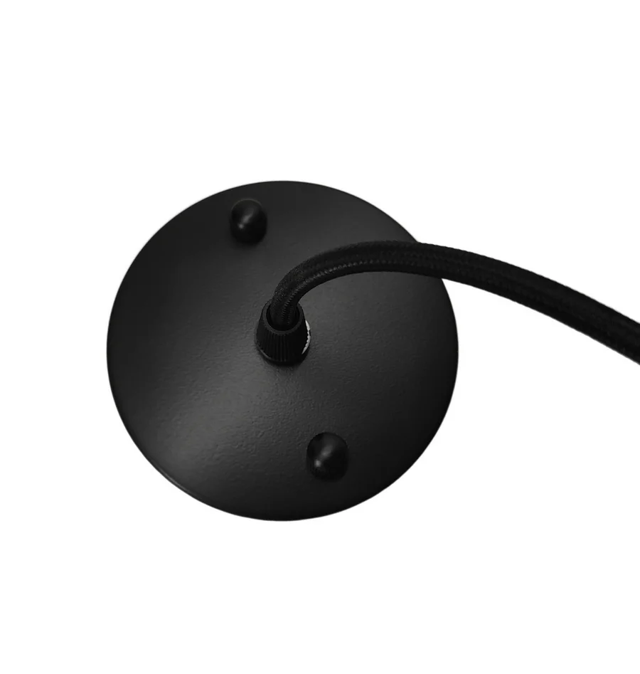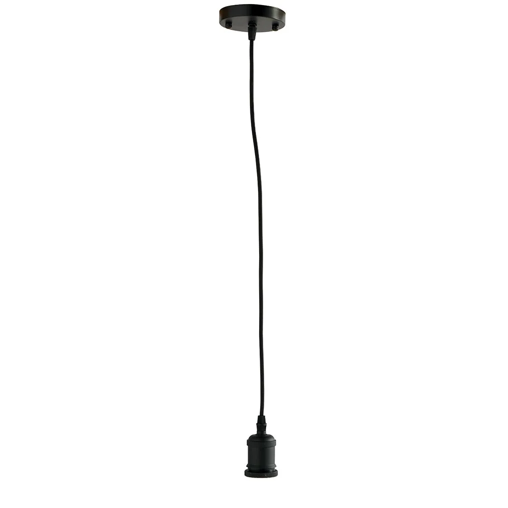 Suspension douille finition métal noir fil tissé noir 150 cm et plafonnier métal rond 10 cm 220-240V – 50HZ – E27- Max