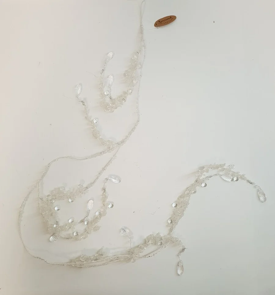 Branchage givré et décors de perles arcylique de longueur environ 125 cm, pour la décoration de vos tables de Noël ou en guirlande sur votre sapin