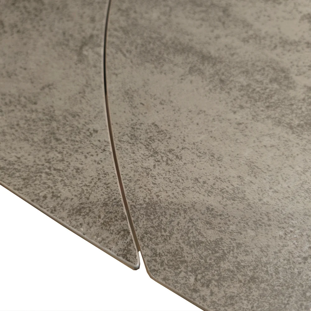Table revêtement céramique de 3 mm collée sur une feuille de verre trempé de 8 mm.