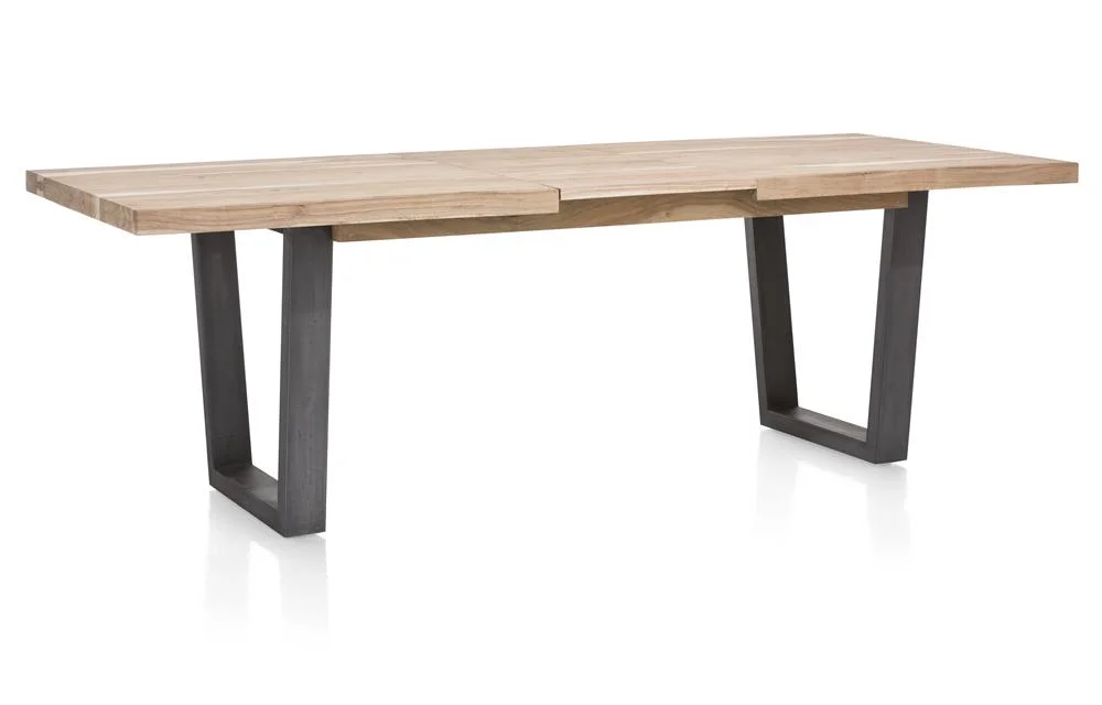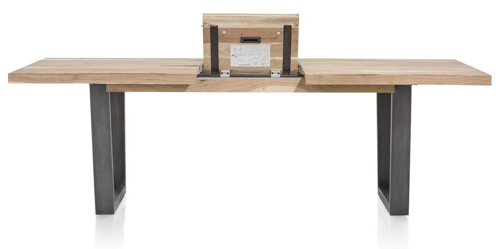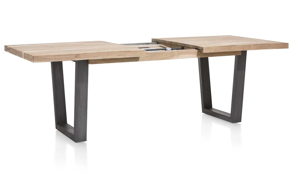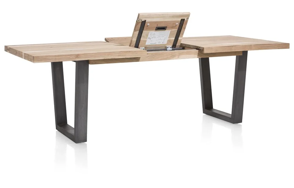 La table Charleston avec allonge papillon apporte aux salles à manger et aux cuisines une touche naturelle et très actuelle, grâce à son plateau en kikar massif et ses pieds métal. Piétements en métal incurvés permettent un style original,
