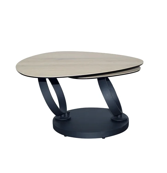 Table basse Milan plateaux pivotant céramique bois aspect chêne clair.