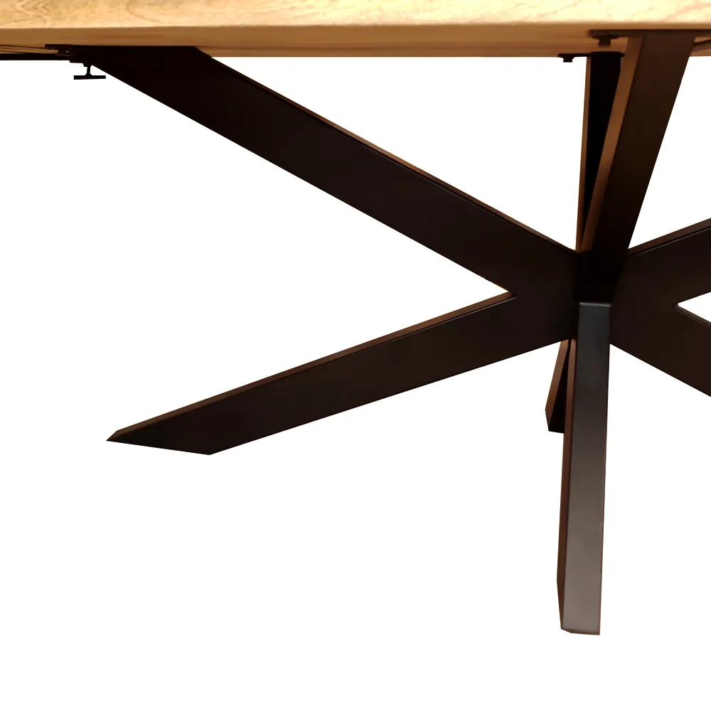 Table Tavolo dotée d’un plateau en manguier massif et d’un pied étoile en métal noir.