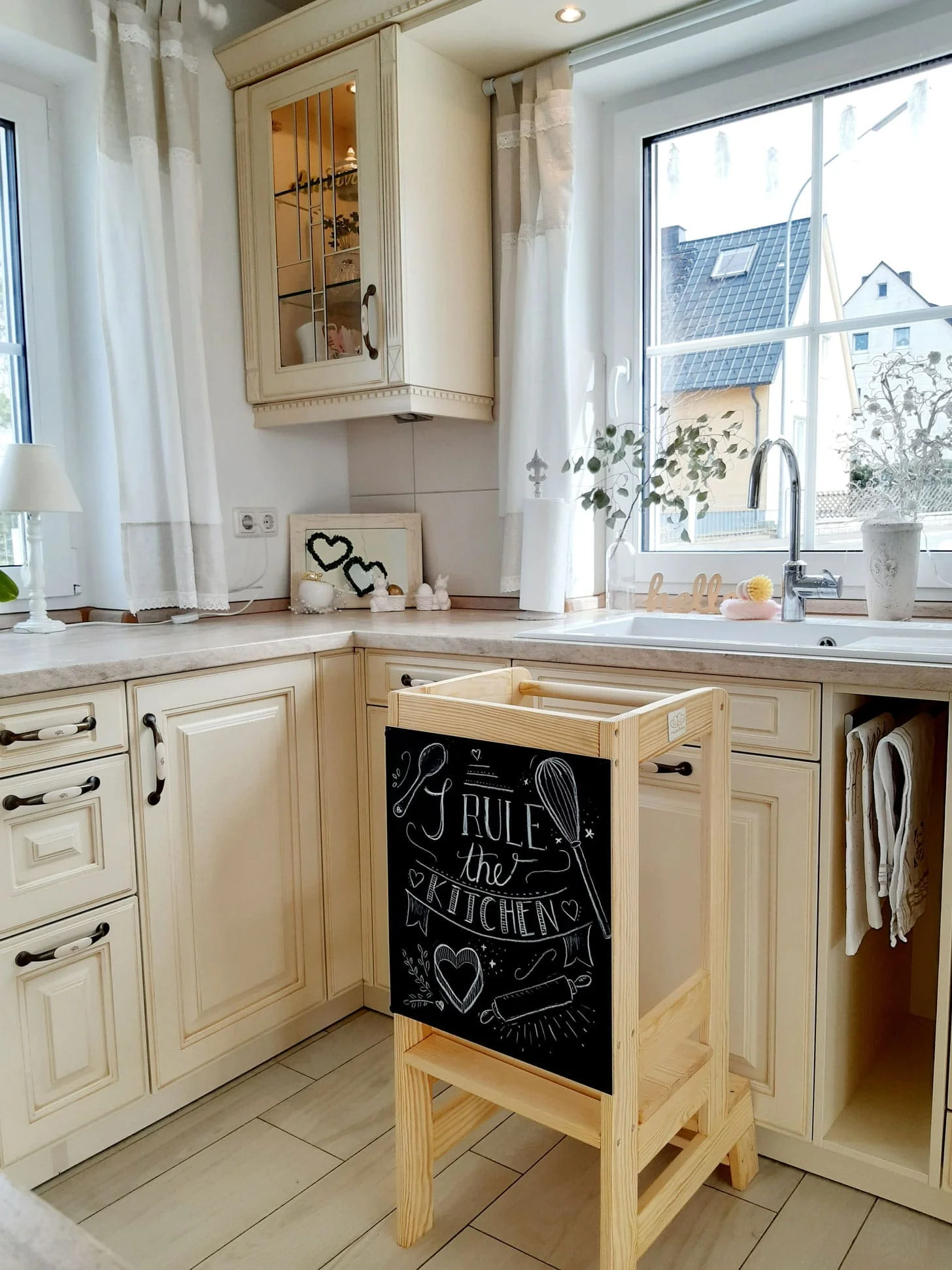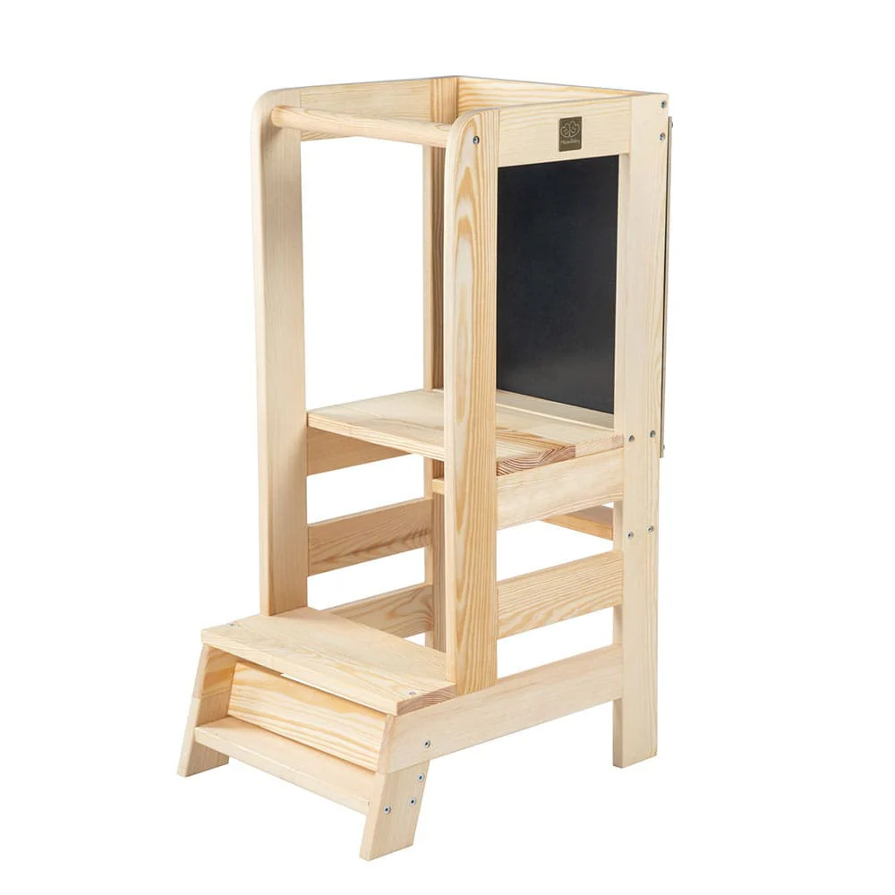 Conçue en tenant particulièrement compte des principes pédagogiques de Maria Montessori, cette tour est un formidable outil pour impliquer nos enfants dans les tâches quotidiennes de la maison mais aussi pour servir de support à leurs activités de création, de concentration, de jeu.