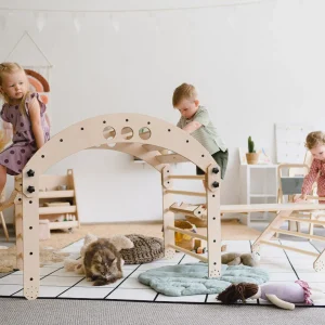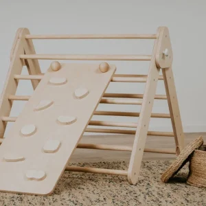 Il invite nos jeunes enfants à coordonner leurs mouvements pour le gravir, grâce à ses barreaux solides et adaptés à leurs mains et leurs pieds. Même lorsqu’ils sont encore tout petits, on peut déjà l’utiliser pour y suspendre leurs mobiles.