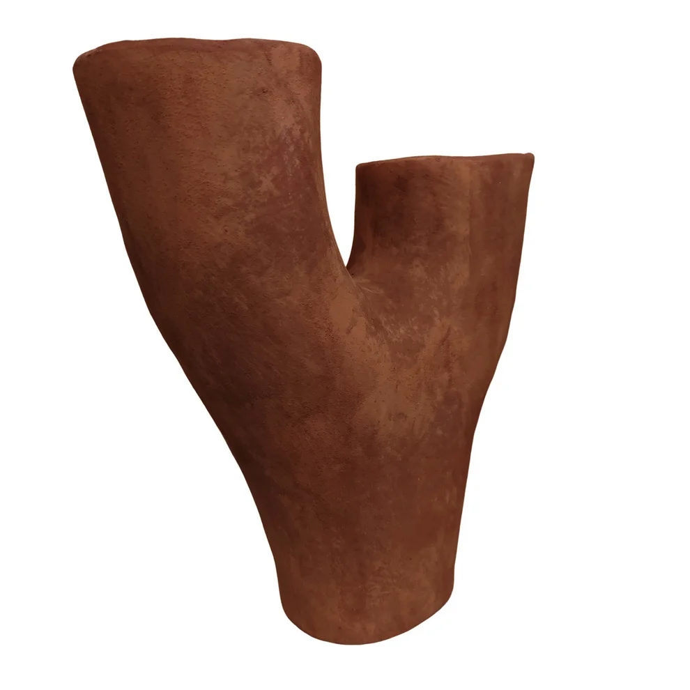 Vase en terre cuite deux ouvertures finition ocre.