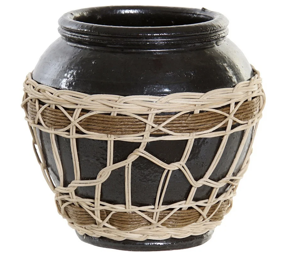 Ce vase en terre cuite bicolore et rotin bénéficie d’un effet tendance nature zen lui permettant d’agrémenter les décorations intérieures d’une note ethnique