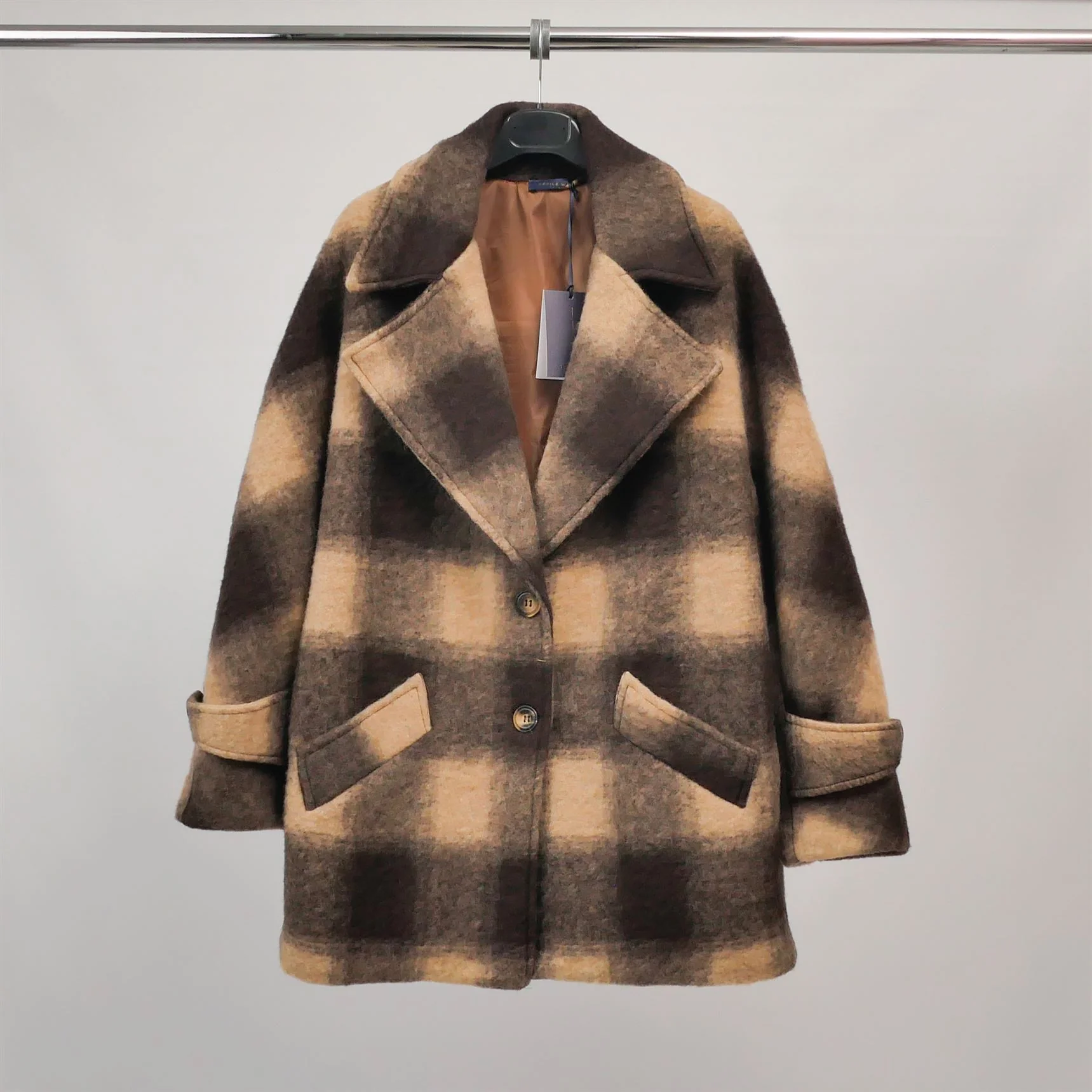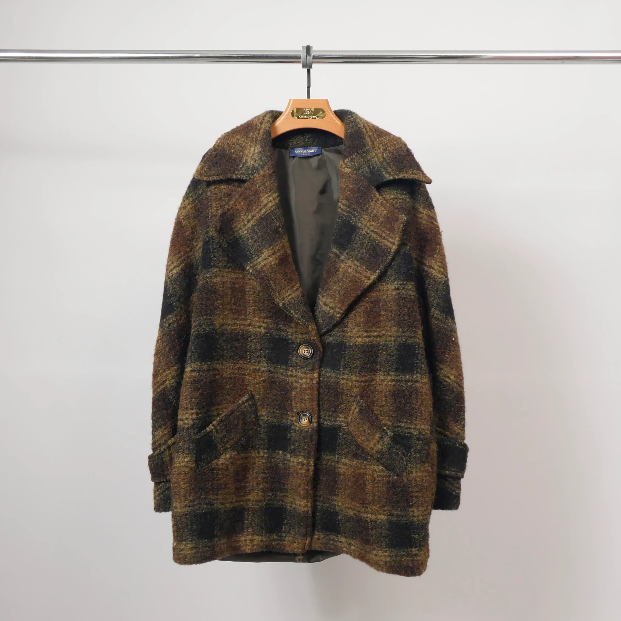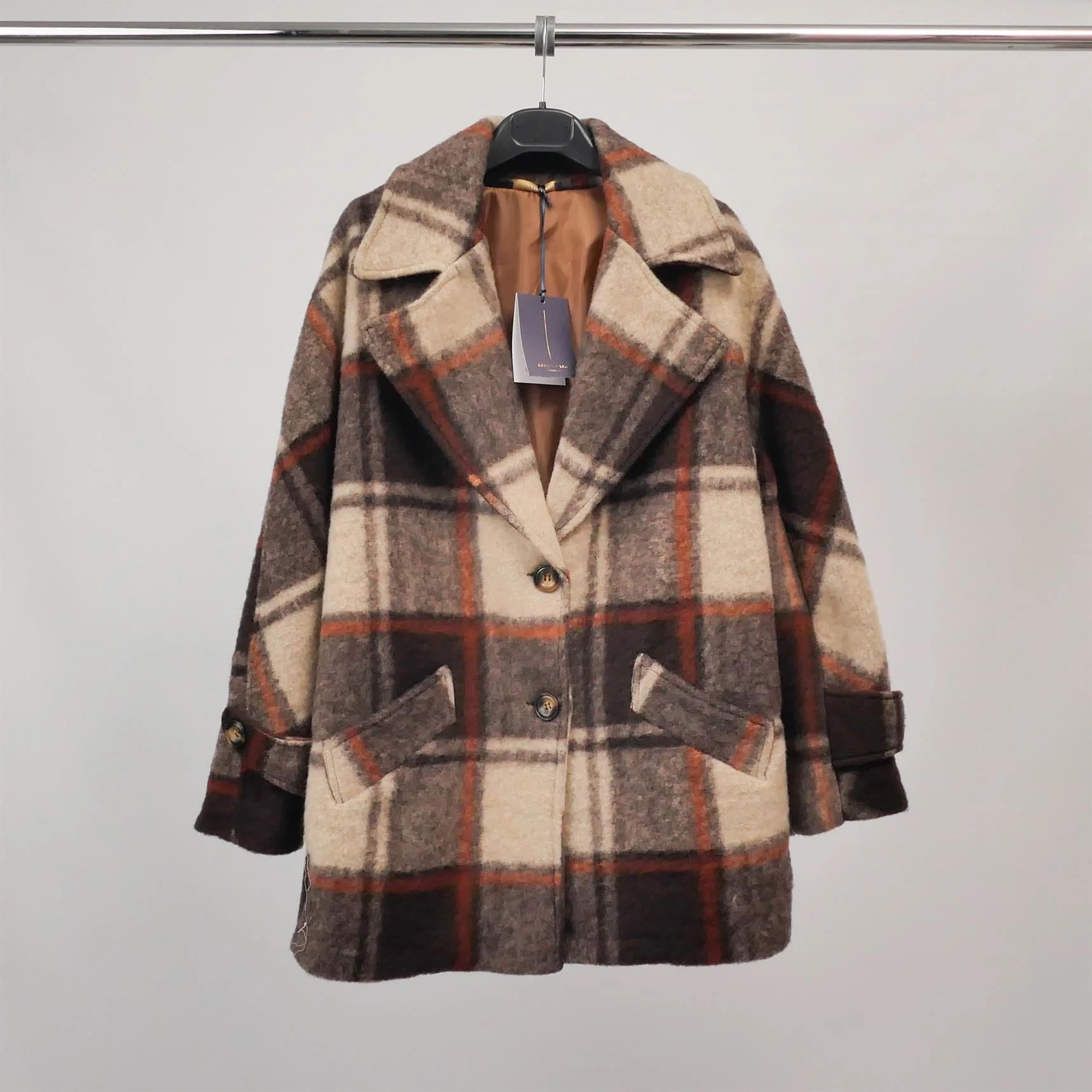 Un incontournable de la saison pour affronter le froid avec élégance. Cette veste en tissu brossé à grands carreaux séduit par son allure rétro chic et sa texture douce et chaleureuse. Son col à larges revers, sa fermeture à deux boutons et ses poches à rabat soulignent une silhouette décontractée mais structurée. Les manches longues sont agrémentées d’un détail patte boutonnée pour une touche supplémentaire de raffinement. Grâce à sa coupe légèrement oversize et son motif carreaux flouté, elle allie confort et style sans compromis. Idéale sur un jean brut, un pantalon en laine ou une robe midi pour un look citadin résolument tendance.