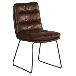 CHAISE MOODY MICROFIBRE HAVANE PIEDS TRAINEAU FER NOIR L 50 H 90 P 66 CM