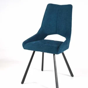 CHAISE GABRIEL PIEDS ANGULAIRE METAL NOIR ASSISE BLEU TISSU 52X63X94 CM