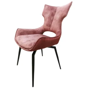 CHAISE CAMILLE PIEDS TUBULAIRE METAL NOIR ASSISE VELOURS ROSE 91 X 56 X 62 CM