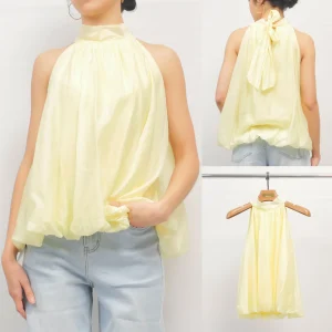 Chemisier sans manches rayé nœud lavallière brodé – TDM13125