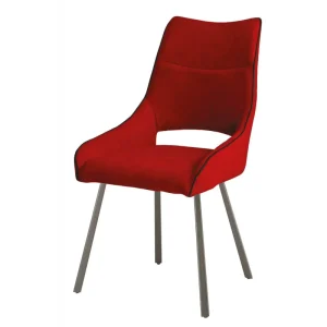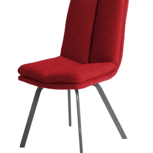 CHAISE ASCOT PIED METAL GRIS MAT ASSISE TISSU ROUGE 51 X 60 X 94 CM