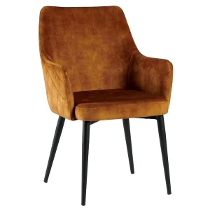 CHAISE AVEC ACCOUDOIR TISSU VELOURS OCRE PIEDS FER NOIR 60 X 89 X 63 CM