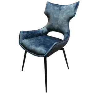 CHAISE CAMILLE PIEDS TUBULAIRE METAL NOIR ASSISE VELOURS BLEU 91 X 56 X 62 CM