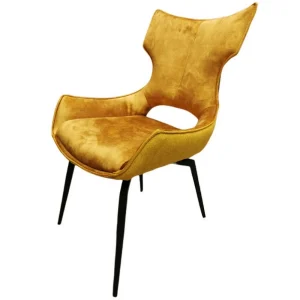 CHAISE CAMILLE PIEDS TUBULAIRE METAL NOIR ASSISE VELOURS OCRE 91 X 56 X 62 CM