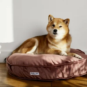 Coussin rond velours rose pour chien Monsieur Hardi