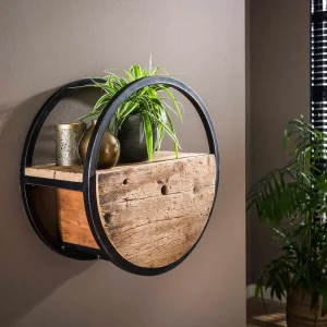ETAGERE METAL ET BOIS RONDE 75 X 21 X 75 CM