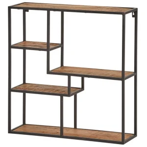 ETAGERE MURALE METAL ET BOIS DE TECK MASSIF 60 X 80 X 20 CM
