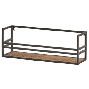 ETAGERE MURALE 1 RAYON EN BOIS DE TECK ET METAL NOIR 65 X 30 X 25 CM