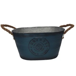 JARDINIERE EN METAL BLEU NATURE PETALES ET BOURGEONS 29 X 18 X 15 CM