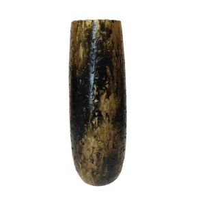 VASE TERRACOTA MAYA OR ET NOIR VIEILLI 45 X 14 CM