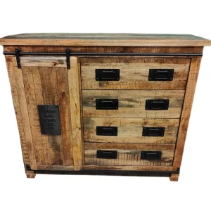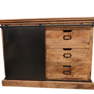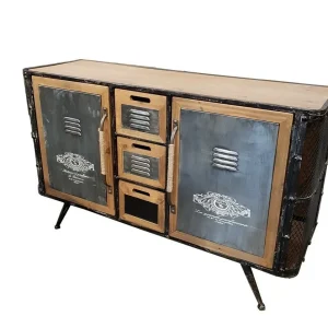 CHEVET STRUCTURE METAL NOIR VIEILLI PORTE PALISSANDRE MASSIF 43 X 33 X 58 CM