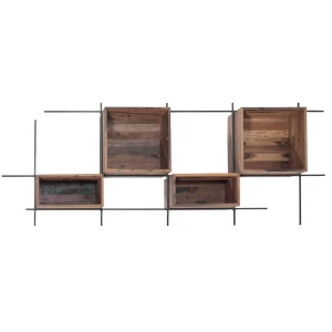 ETAGERE MURALE METAL ET BOIS DE TECK MASSIF 60 X 80 X 20 CM