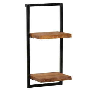 ETAGERE MURALE 2 RAYONS EN BOIS DE TECK ET METAL NOIR 65 X 30 X 25 CM