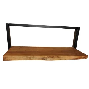 ETAGERE MURALE 1 RAYON EN BOIS DE TECK ET METAL NOIR 65 X 30 X 25 CM