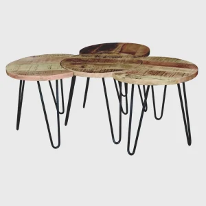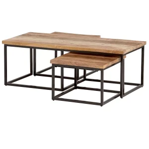 SET DE 2 SELLETTES FER NOIR ET BOIS DE RECUPERATION 40 X 40 X 50 35 X 35 X 45 CM