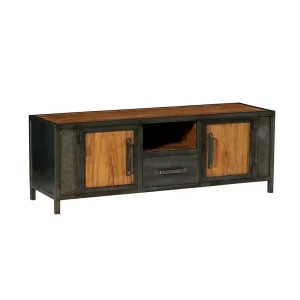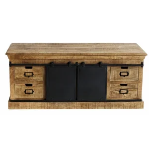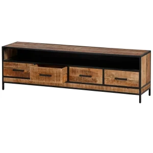 PORTE REVUE A POSER 3 NIVEAUX EN METAL ET BOIS DE MANGUIER MASSI 44 X 35 X 65 CM