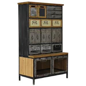 POUF COFFRE DE RANGEMENT CIRCULAIRE METAL SAFRAN DECO INDUSTRIAL 30 x 39.5 cm