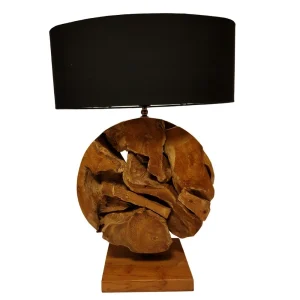 LAMPE BASE CIRCULAIRE EN TECK RECYCLE ABJ OVALE NOIR 47X68X25CM