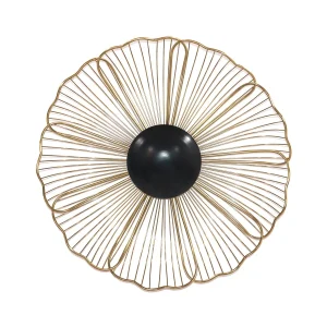 APPLIQUE MURALE FLEUR METAL DORE ET NOIR 48 X 48 X 13 CM