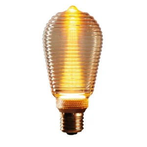 AMPOULE LED RETRO VINTAGE VERRE AMBRE STRIURES BLANC CHAUD E27 3.5W 6.7 X 15 CM