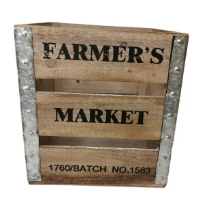 CAISSE A POMME CARRE EN BOIS ET ACIER 24 X 24 X 27 CM
