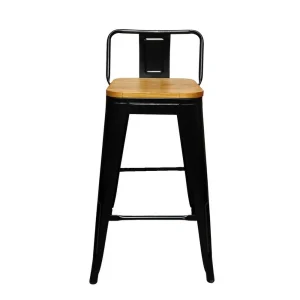 CHAISE D’ILOT METAL NOIR AVEC DOSSIER ET ASSISE BOIS BROSSE 84 X 42 X 42 CM
