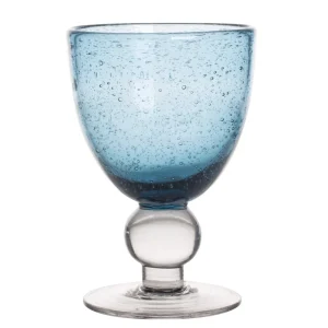VERRE A PIED ARTISAN BULLE BLEU TURQUOISE 28CL