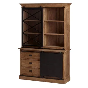 MEUBLE VITRINE FLIX 1 PORTE EN PIN NOIR ET CHENE HUILE 56 X 146 X 40 cm