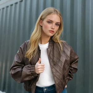 Veste matelassée en simili cuir chocolat MJ264035