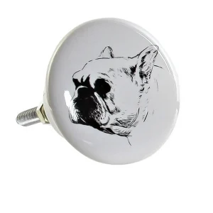 BOUTON DE PORTE CERAMIQUE BLANC DECOR CHIEN NOIR 4 X 2.5 CM ET METAL